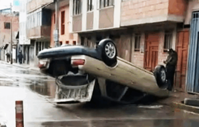 Un accidente provocado por el exceso de velocidad terminó con un vehículo volcado y con las llantas hacia arriba en Wanchaq