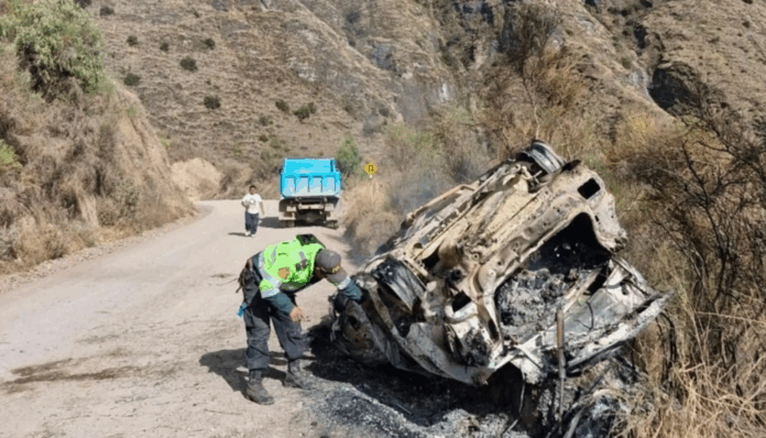 Una persona falleció y otras dos resultaron con múltiples golpes y quemaduras, tras el despiste, vuelco y posterior incendio de un auto en una carretera de la provincia cusqueña de Paruro.